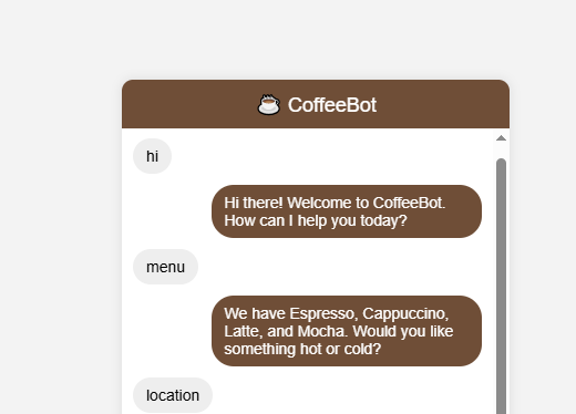 A simple chatbot I built for a coffee shop. It helps customers ask questions, get menu info, and have fun conversations.
